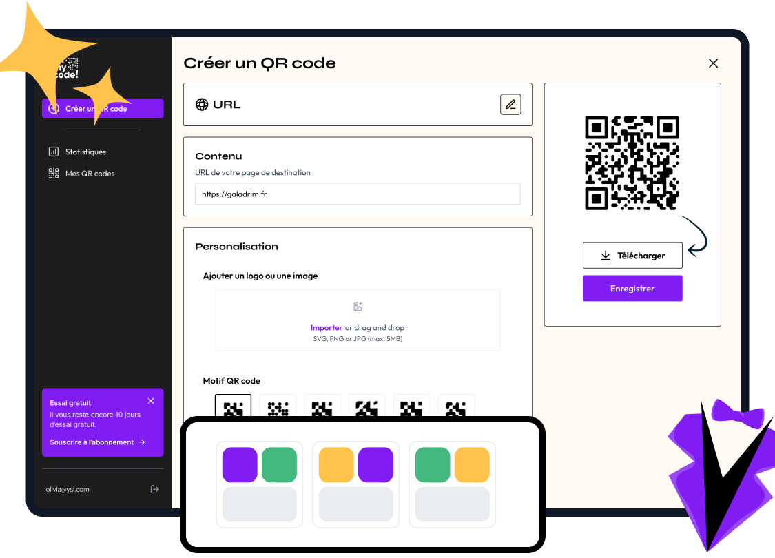 - Create your code with your logo, customize the color, shape, borders... everything is possible!